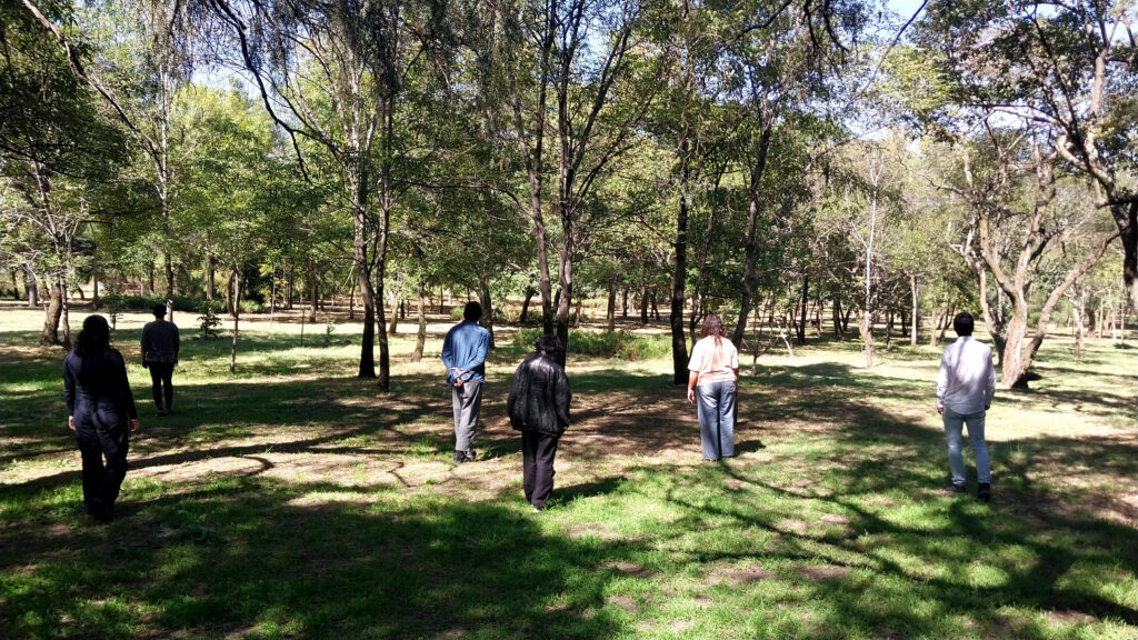 Empleo herramientas como Deep Listening, escucha espacial y activa, sound walks, partituras gráficas, grabaciones de campo y lecturas sobre estudios sonoros y filosofía. Mi intención es generar espacios de encuentro y diálogo grupal que promuevan una escucha colectiva y reflexiva.
